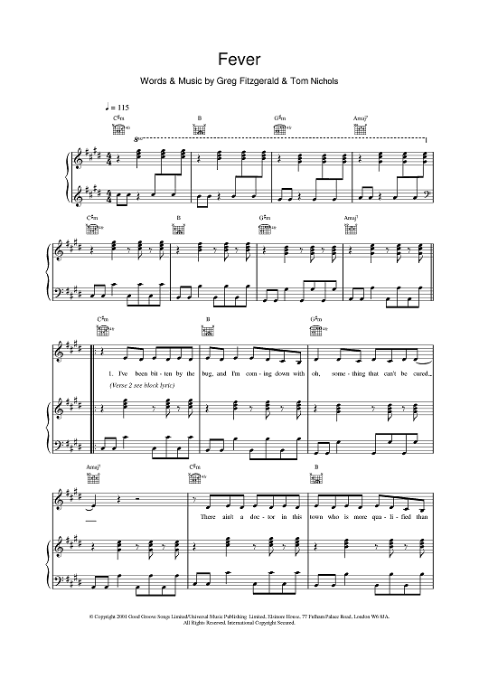 Digital Sheet Music for Fever by Kylie Minogue scored for Piano/Vocal/Chords; id:379006