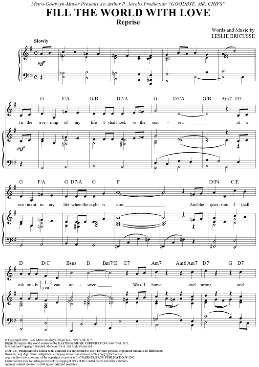 "Fill the World with Love (Reprise)" Sheet Music by Leslie Bricusse