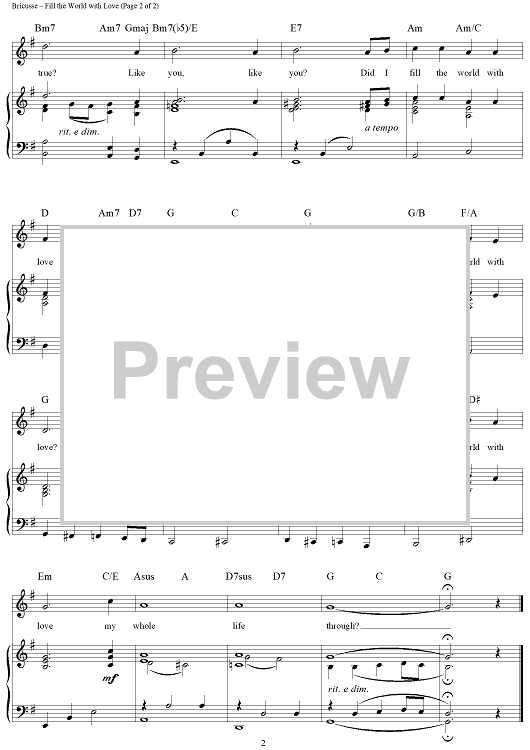 Digital Sheet Music for Fill the World with Love (Reprise) by Leslie Bricusse scored for Piano/Vocal/Chords; id:356069