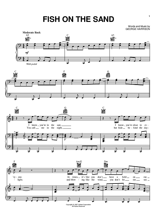 Digital Sheet Music for Fish On The Sand by George Harrison scored for Piano/Vocal/Chords; id:384882