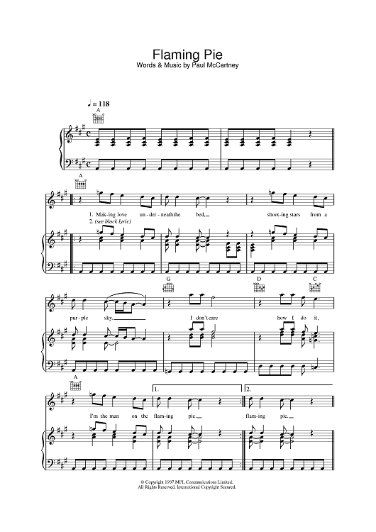 Digital Sheet Music for Flaming Pie by Paul McCartney scored for Piano/Vocal/Chords; id:389238