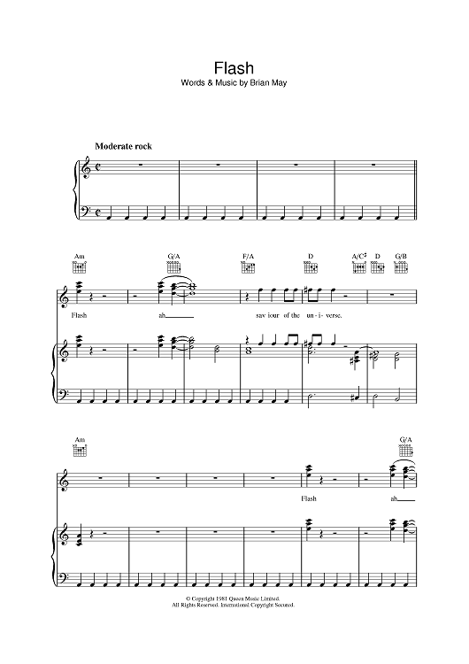 Digital Sheet Music for Flash by Queen, Brian May scored for Piano/Vocal/Chords; id:391544