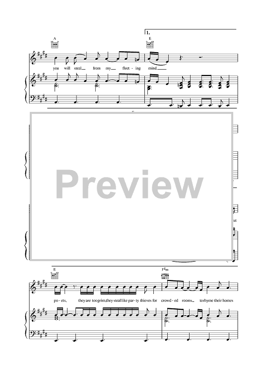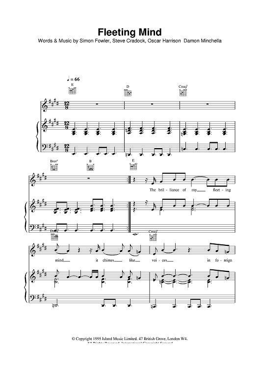 Digital Sheet Music for Fleeting Mind by Steve Cradock, Simon Fowler, Oscar Harrison, Damon Minchella, Ocean Colour Scene scored for Piano/Vocal/Chords; id:379739