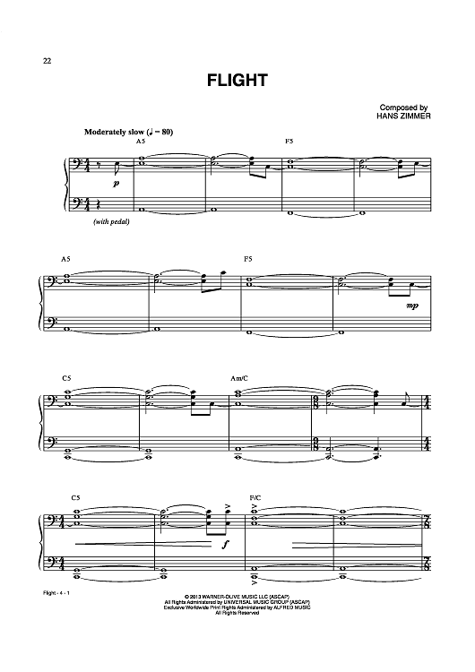 Digital Sheet Music for Flight by Hans Zimmer scored for Piano/Chords; id:437383