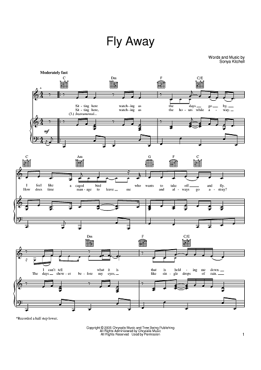 "Fly Away" Sheet Music by Sonya Kitchell