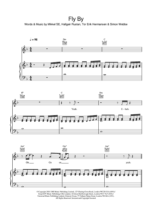 Digital Sheet Music for Fly By by Tor Erik Hermansen, Blue, Hallgeir Rustan, Mikkel Eriksen scored for Piano/Vocal/Chords; id:382612