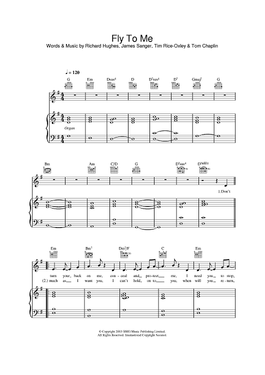 Digital Sheet Music for Fly To Me by Keane, Tim Rice-Oxley, Richard David Hughes, James Sanger scored for Piano/Vocal/Chords; id:381702