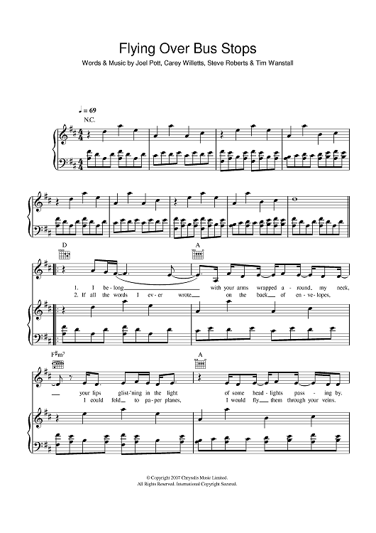 Digital Sheet Music for Flying Over Bus Stops by Athlete, Joel Pott, Steve Roberts, Tim Wanstall, Carey Willetts scored for Piano/Vocal/Chords; id:401636