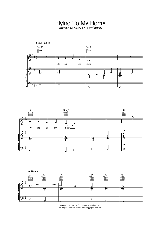 Digital Sheet Music for Flying To My Home by Paul McCartney scored for Piano/Vocal/Chords; id:389167