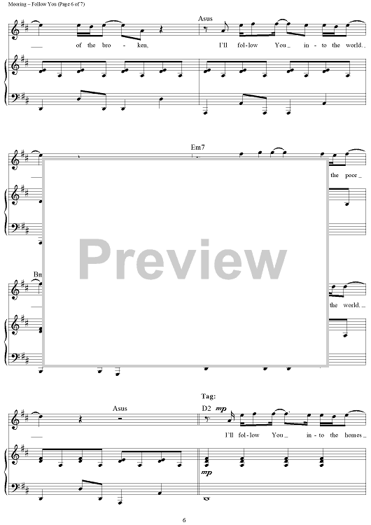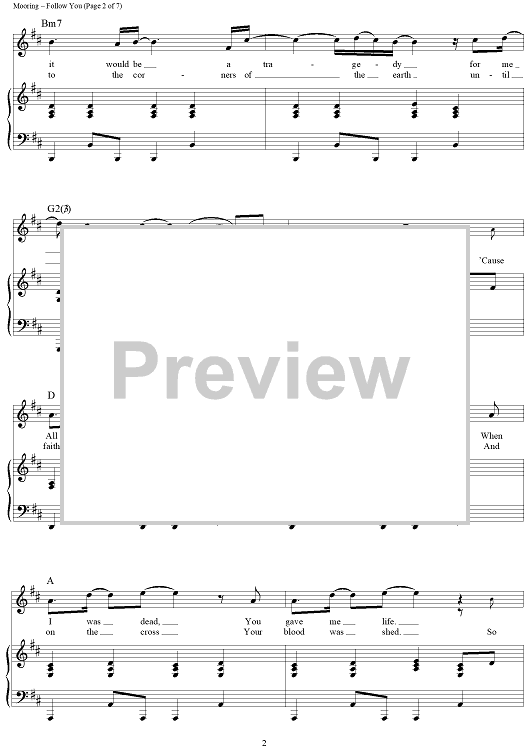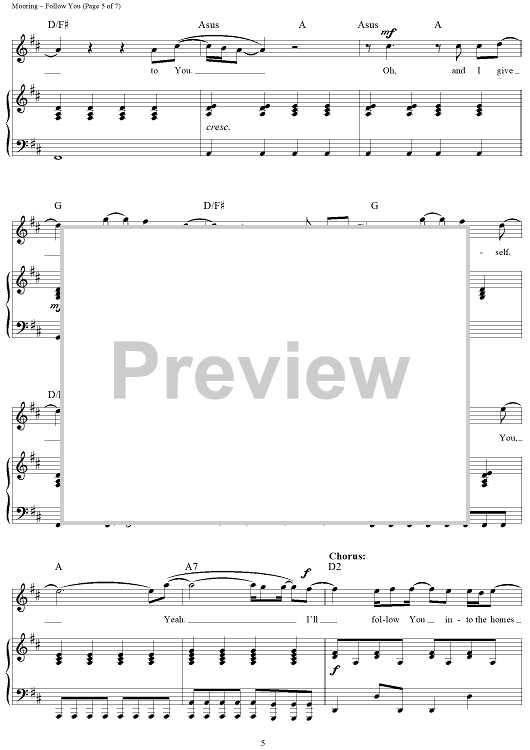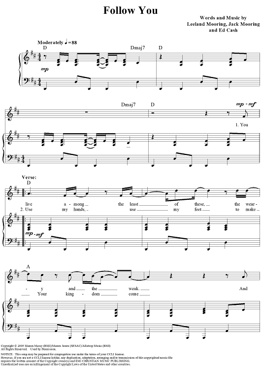 Digital Sheet Music for Follow You by Ed Cash, Leeland Mooring, Jack Mooring, Leeland scored for Piano/Vocal/Chords; id:405216