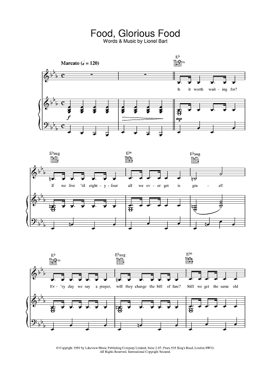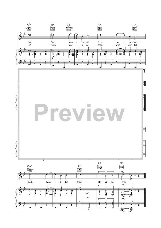 Digital Sheet Music for Food, Glorious Food by Lionel Bart scored for Piano/Vocal/Chords; id:375533