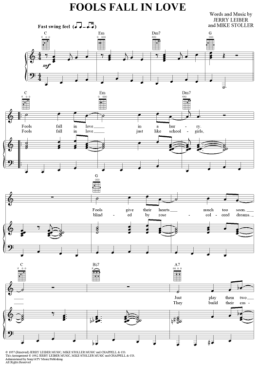 Digital Sheet Music for Fools Fall in Love by Elvis Presley, Jerry Leiber, Mike Stoller scored for Piano/Vocal/Chords; id:250522
