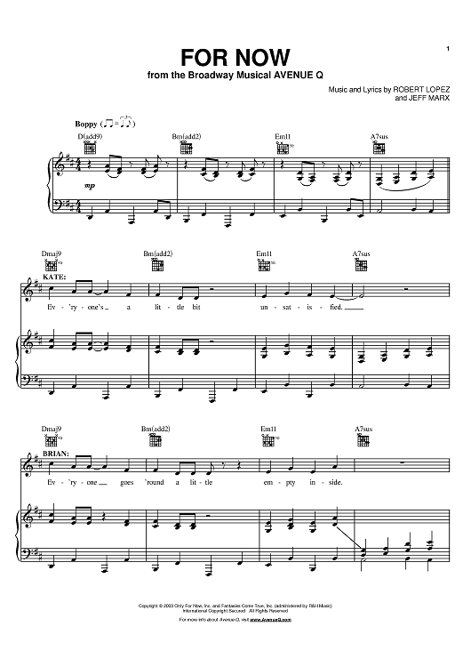 Digital Sheet Music for For Now by Robert Lopez, Jeff Marx scored for Piano/Vocal/Chords; id:374774