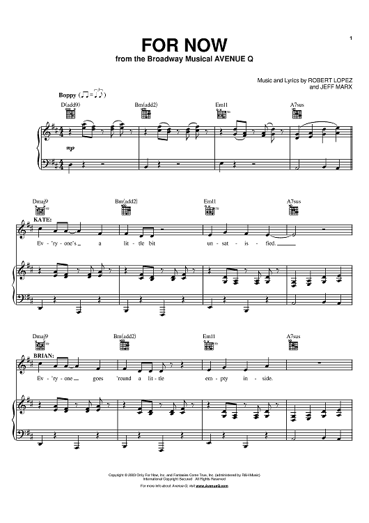 Digital Sheet Music for For Now by Robert Lopez, Jeff Marx scored for Piano/Vocal/Chords; id:384644