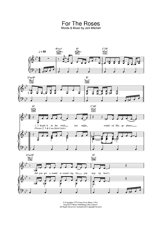 Digital Sheet Music for For The Roses by Joni Mitchell scored for Piano/Vocal/Chords; id:384037