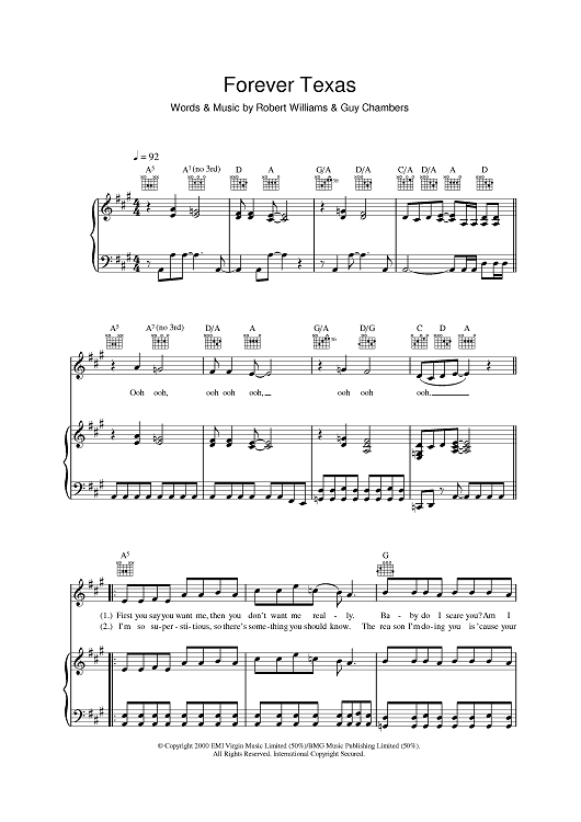 Digital Sheet Music for Forever Texas by Robbie Williams, Guy Chambers scored for Piano/Vocal/Chords; id:401276