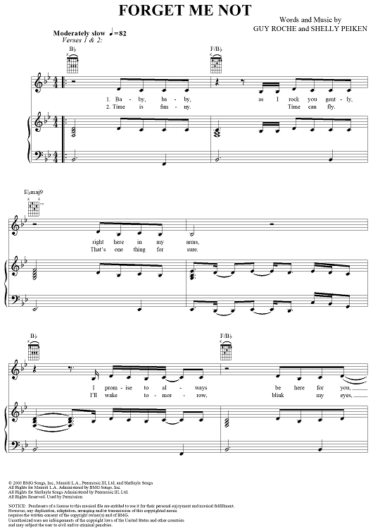 Digital Sheet Music for Forget Me Not by Celine Dion, Shelly Peiken, Guy Roche scored for Piano/Vocal/Chords; id:296425