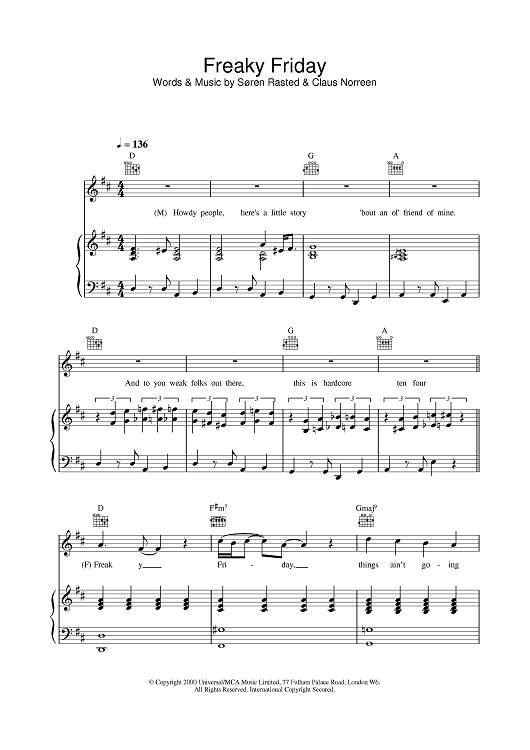 Digital Sheet Music for Freaky Friday by Aqua scored for Piano/Vocal/Chords; id:377372
