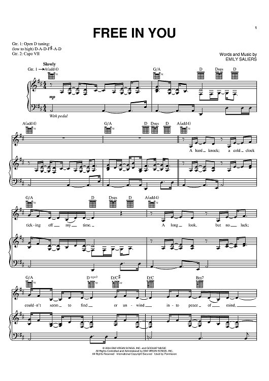 Digital Sheet Music for Free In You by Indigo Girls, Emily Saliers scored for Piano/Vocal/Chords; id:384347