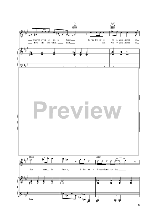 Digital Sheet Music for Free Man In Paris by Joni Mitchell scored for Piano/Vocal/Chords; id:391615