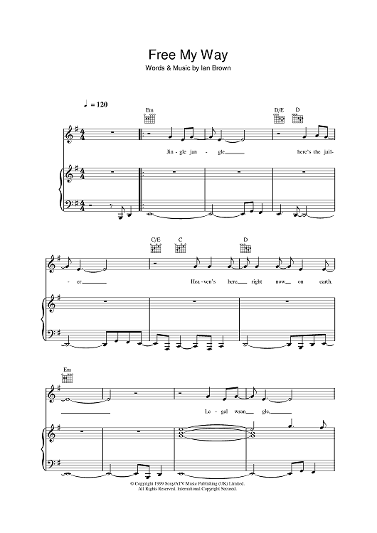 Digital Sheet Music for Free My Way by Ian Brown scored for Piano/Vocal/Chords; id:392125