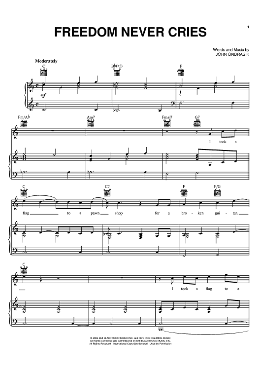 "Freedom Never Cries" Sheet Music by Five for Fighting