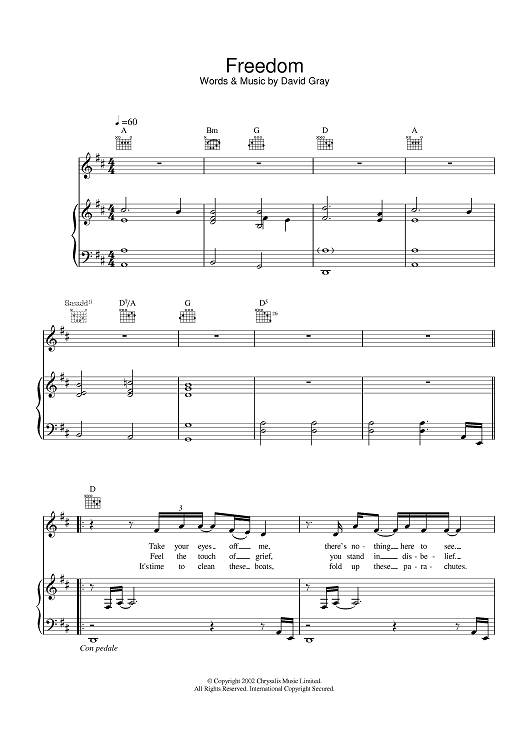 Digital Sheet Music for Freedom by David Gray scored for Piano/Vocal/Chords; id:377772