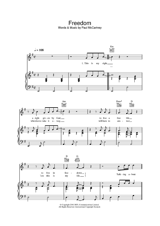 Digital Sheet Music for Freedom by Paul McCartney scored for Piano/Vocal/Chords; id:389239