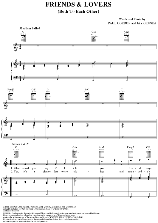 Digital Sheet Music for Friends and Lovers (Both to Each Other) by Paul Gordon, Jay Gruska scored for Piano/Vocal/Chords; id:269856