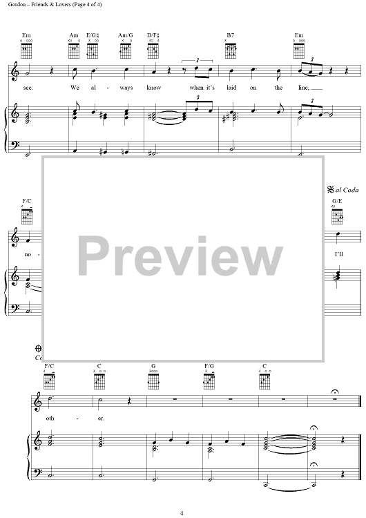 "Friends and Lovers (Both to Each Other)" Sheet Music by Paul Gordon