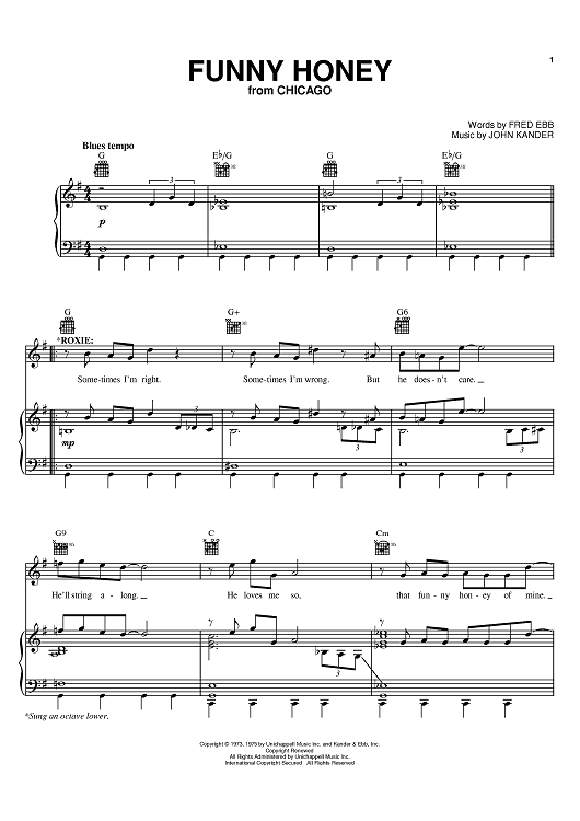 Digital Sheet Music for Funny Honey by John Kander, Fred Ebb scored for Piano/Vocal/Chords; id:381742