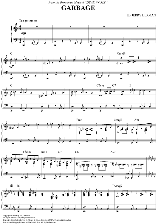 Digital Sheet Music for Garbage by Jerry Herman scored for Piano/Chords; id:366070