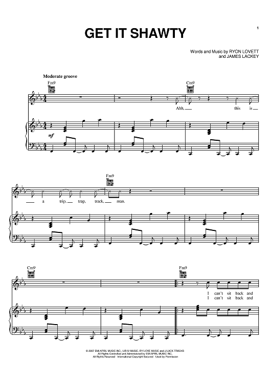 Digital Sheet Music for Get It Shawty by James Lackey, Lloyd, Ryon Lovett scored for Piano/Vocal/Chords; id:398001