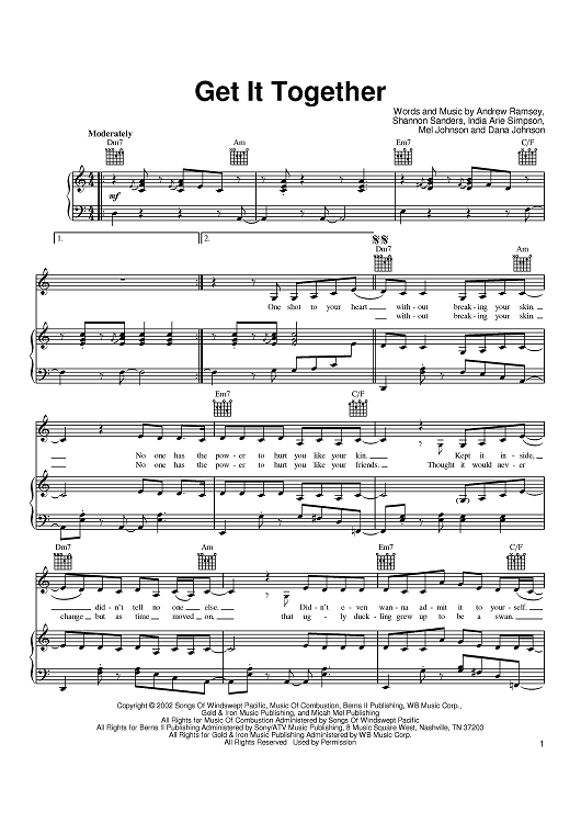 Digital Sheet Music for Get It Together by India.Arie, Shannon Sanders, Andrew Ramsey, Dana Johnson, Mel Johnson scored for Piano/Vocal/Chords; id:384666