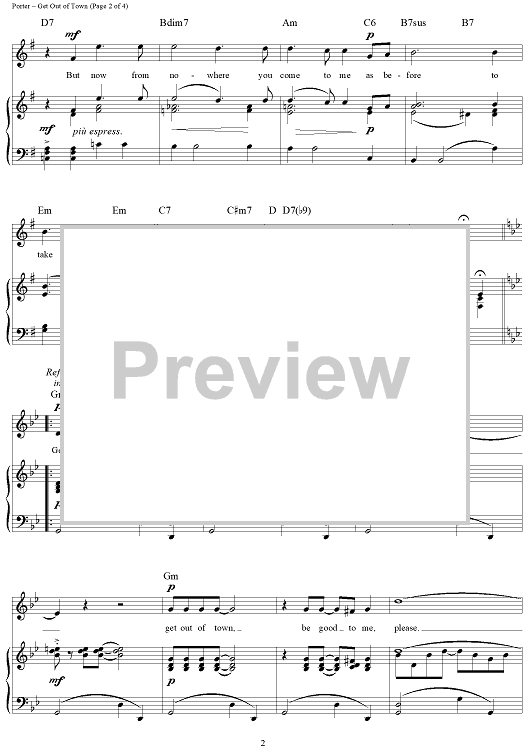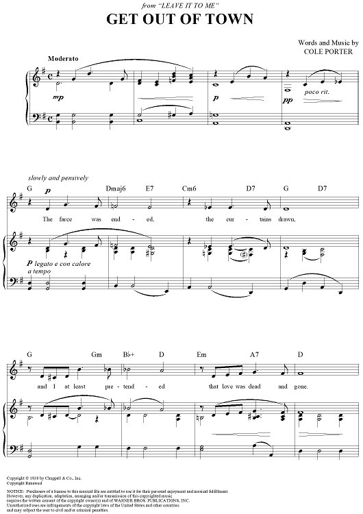 Digital Sheet Music for Get Out of Town by Cole Porter scored for Piano/Vocal/Chords; id:313925