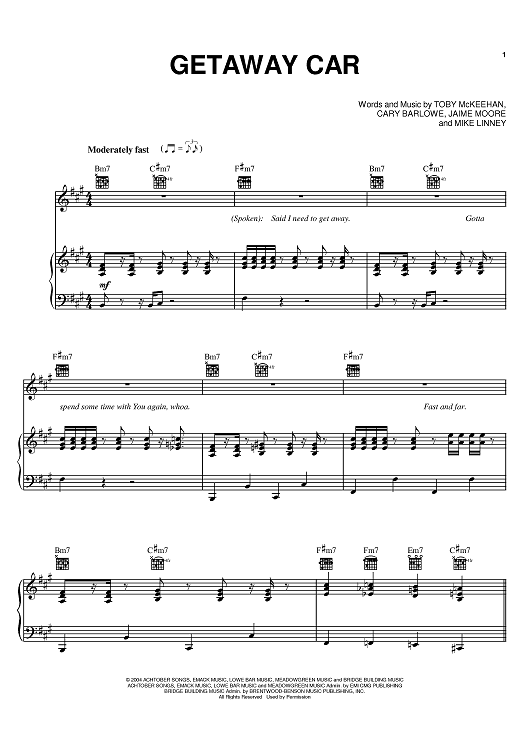 Digital Sheet Music for Getaway Car by tobyMac, Cary Barlowe, Mike Linney, Jaime Moore scored for Piano/Vocal/Chords; id:382020