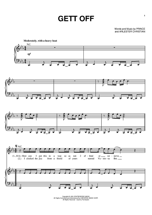 Digital Sheet Music for Gett Off by Prince, Arlester Christian scored for Piano/Vocal/Chords; id:398342