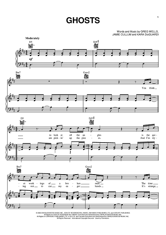 Digital Sheet Music for Ghosts by Greg Wells, Nick Lachey, Kara DioGuardi, Jamie Cullum scored for Piano/Vocal/Chords; id:401843