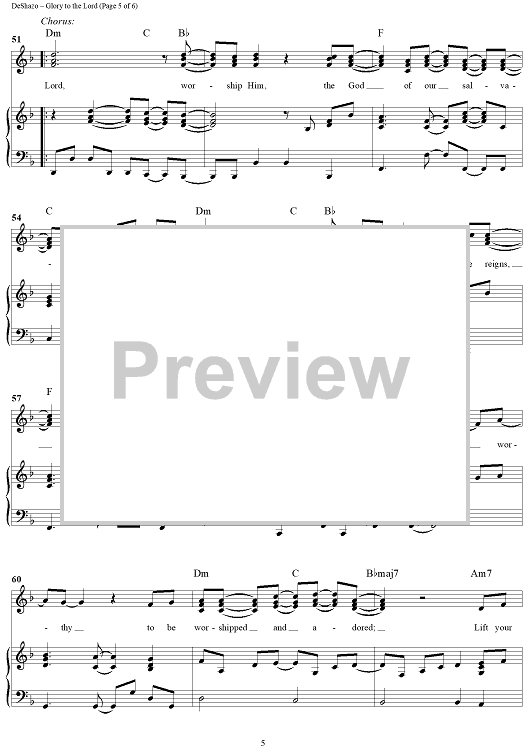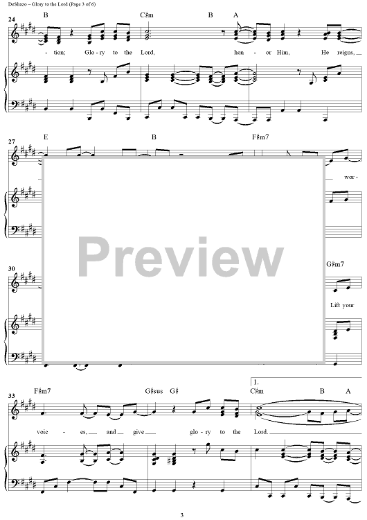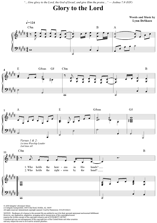 Digital Sheet Music for Glory to the Lord by Lynn DeShazo scored for Piano/Vocal/Chords; id:283197