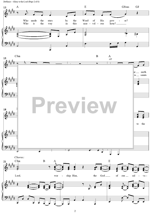 "Glory to the Lord" Sheet Music by Lynn DeShazo