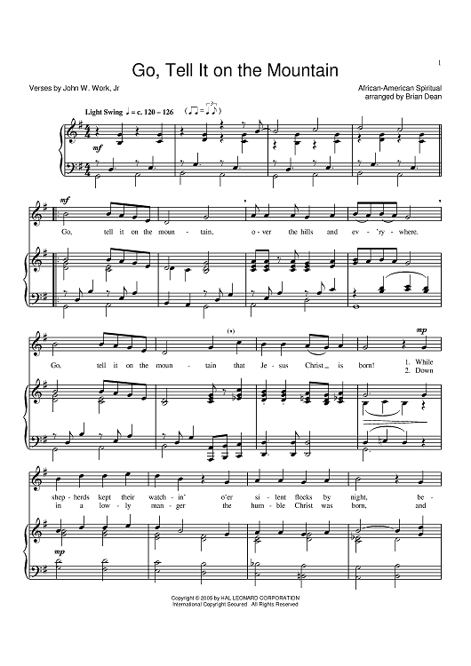 "Go, Tell It On The Mountain" Sheet Music by Jr., John W. Work