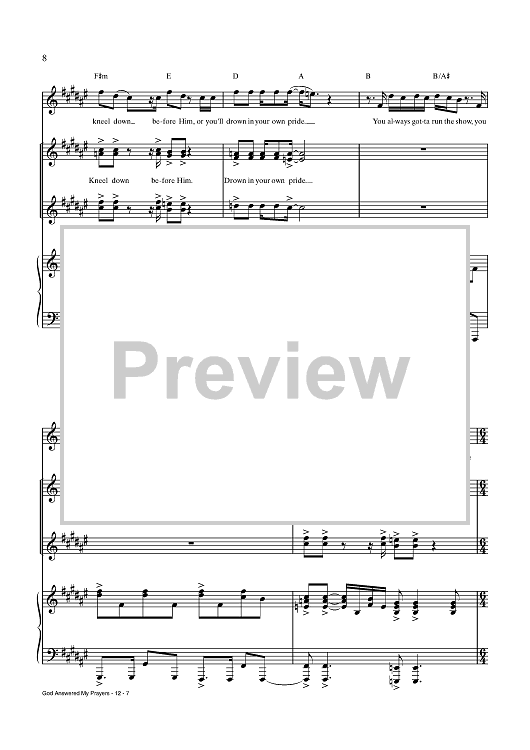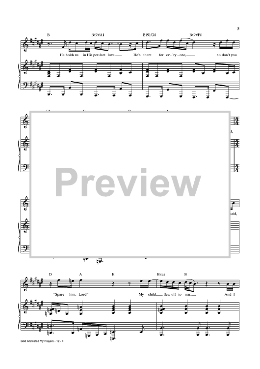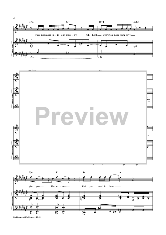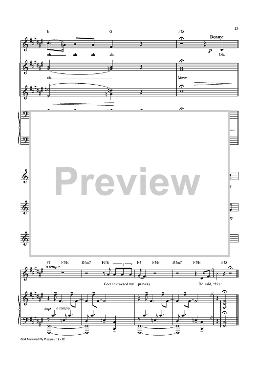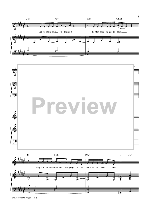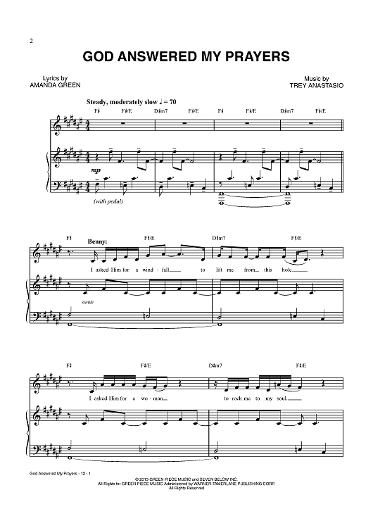 Digital Sheet Music for God Answered My Prayers by Trey Anastasio, Amanda Green scored for Piano/Vocal/Chords; id:438543