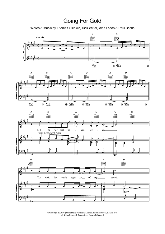 Digital Sheet Music for Going for Gold by Shed Seven scored for Piano/Vocal/Chords; id:376213