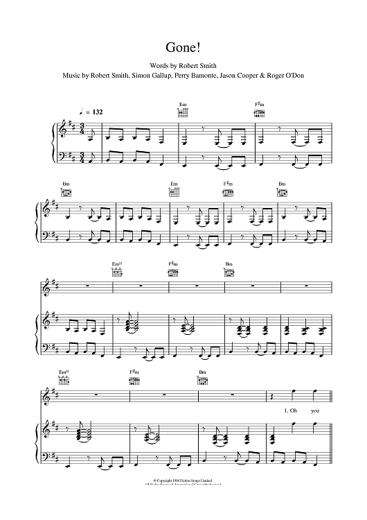 Digital Sheet Music for Gone! by The Cure scored for Piano/Vocal/Chords; id:376467