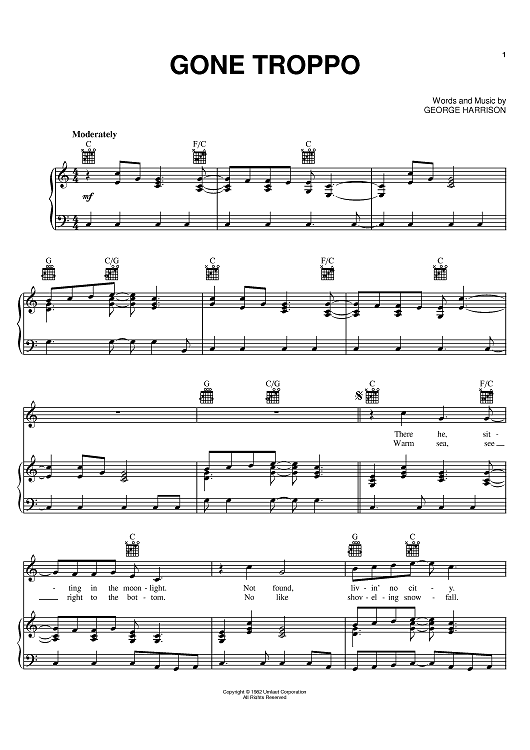 Digital Sheet Music for Gone Troppo by George Harrison scored for Piano/Vocal/Chords; id:384883