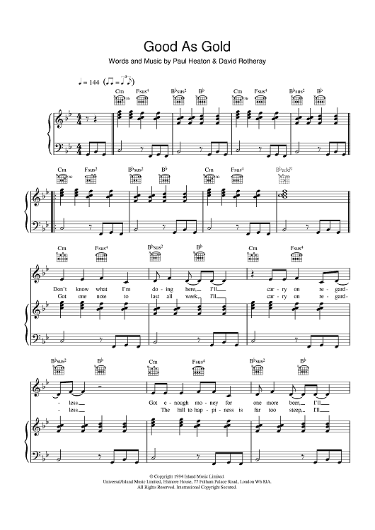 Digital Sheet Music for Good As Gold (Stupid As Mud) by The Beautiful South scored for Piano/Vocal/Chords; id:377513
