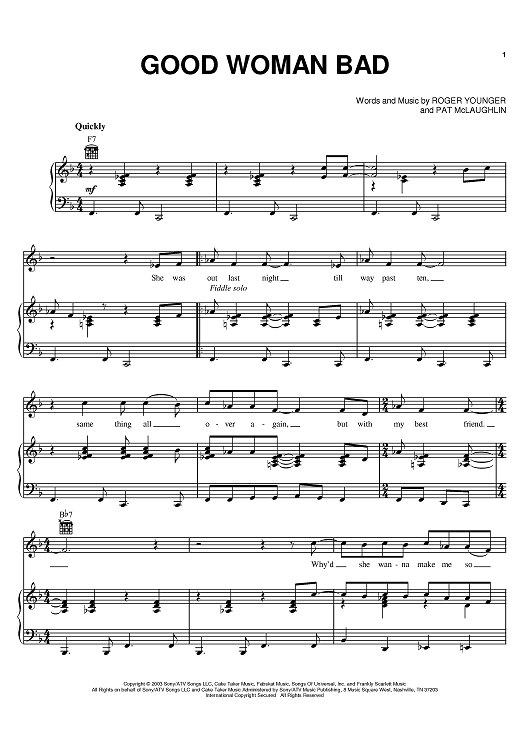 Digital Sheet Music for Good Woman Bad by Pat McLaughlin, Josh Turner, Roger Younger scored for Piano/Vocal/Chords; id:374569