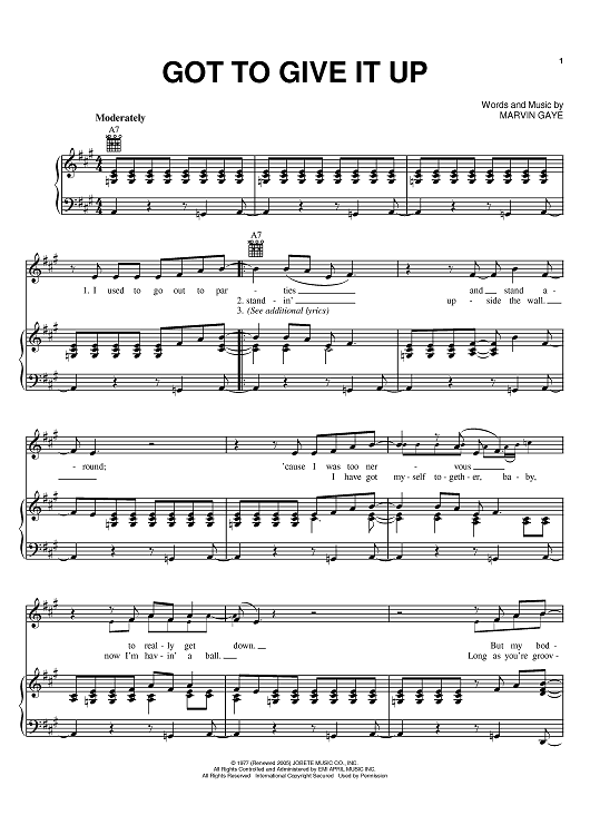 Digital Sheet Music for Got To Give It Up by Marvin Gaye scored for Piano/Vocal/Chords; id:398328