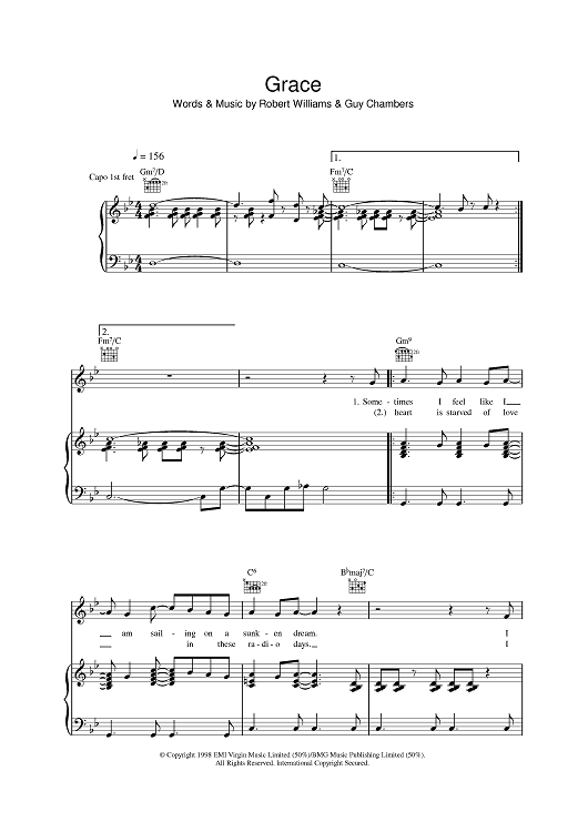 Digital Sheet Music for Grace by Robbie Williams, Guy Chambers scored for Piano/Vocal/Chords; id:401257