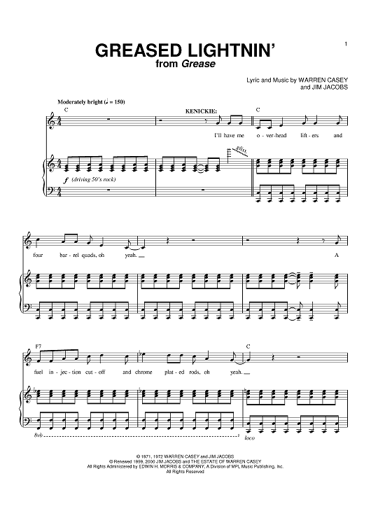 Digital Sheet Music for Greased Lightnin' by John Travolta, Warren Casey, Jim Jacobs scored for Piano/Vocal/Chords; id:387824